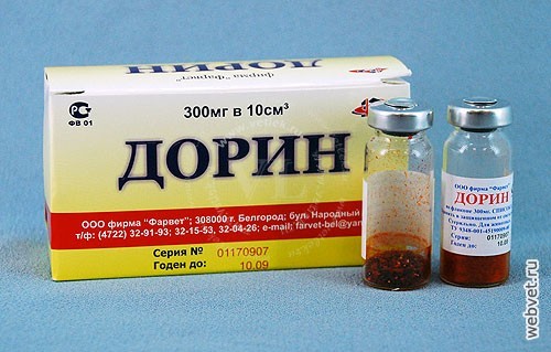 Перед применением готовят инъекционный раствор, для чего порошок растворяют в воде для инъекций, растворе новокаина, в физиологическом растворе или в некоторых других растворителях. Раствор дорина вводят в течение 2 – 5 суток в следующих дозах: телятам — внутримышечно — 5 – 7 мг/кг живой массы, внутривенно — 3 мг/кг живой массы; поросятам — внутримышечно — 5 – 7 мг/кг живой массы; собакам, кошкам и пушным зверям — внутримышечно (внутривенно) — 5 – 7 мг/кг живой массы; коровам — против мастита — внутривымянно — 150 мг в каждую больную четверть, одна инъекция на курс лечения; эндометрита — внутривенно — 150 мг на голову, внутриматочно — 150 мг, через сутки; птице — внутрь с питьем 8 – 10 мг/кг в сутки, курс лечения 5 суток.