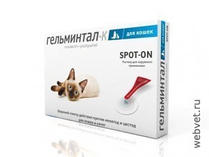 8. Гельминтал К назначают кошкам с лечебной и профилактической целью при кишечных нематодозах (токсокароз, токсаскаридоз, унцинариоз, анкилостомоз), цестодозах (тениидозы, дипилидиоз, эхинококкозы), энтомозах, вызванных блохами, отодектозе и нотоэдрозе, а также для профилактики дирофиляриоза.