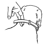 шаг 3 Пропустите свободный конец ошейника через петли и срежьте излишек ошейника, оставив свободный конец 2 см. Если вы надеваете ошейник на растущего щенка необходимо оставить более длинный запас.